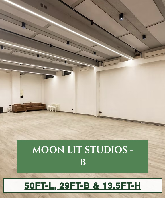Art and Talent need to be showcased in their best form and we provide the perfect ambiance for the same. Moonshine Studios is an Independent Three Storey Building in Andheri West, Mumbai. It consists of Seven Studios that are suitable for all creative needs. It is a versatile space that pushes people's boundaries, providing an unconstrained space for production houses, photographers, videographers, dancers, content creators, and artists to explore and execute their artistic aptitude.Our unique areas offer abundant natural daylight in a few studios, we have a white basement studio, Long French Windows, Big Circular Windows, Open Terrace Studio, Balcony, Cafe, Parking Space for Vanity Vans, and Space for food catering paired with great functionality helps us cater to diverse kinds of shoots.