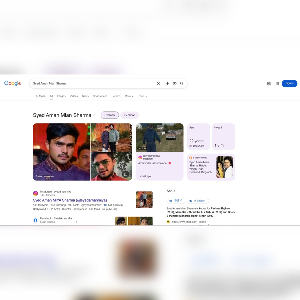 Syed Aman Mian Sharma ACTOR / MODEL / INFLUENCER | MUMBAI