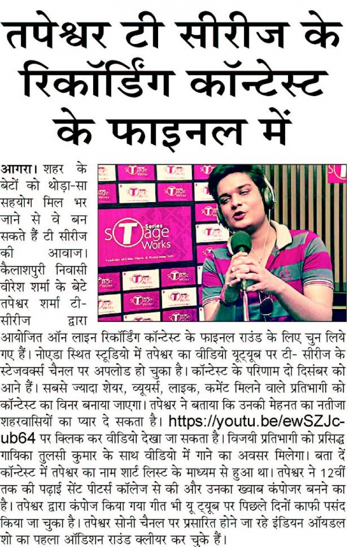 Tapeshvar Kalia is plackback singer , composer from bollywood , His recently released works is the track "zabt e Dil" with T-SERIES from the Bollywood movie Pareshan Parinda. |