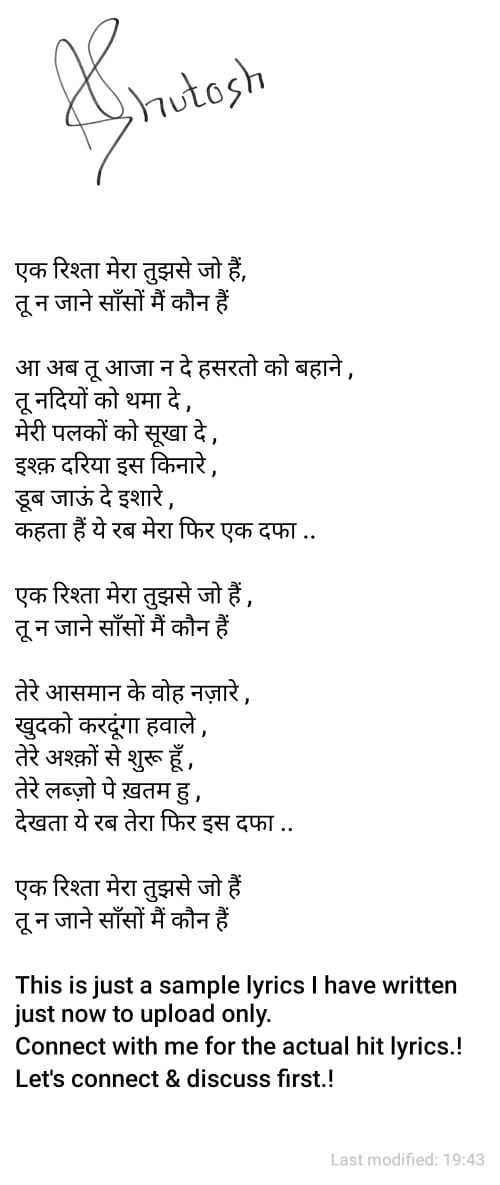 Hey, This is Ashutosh Vyas and I am following my passion from budding lyricist to become successful lyricist. |