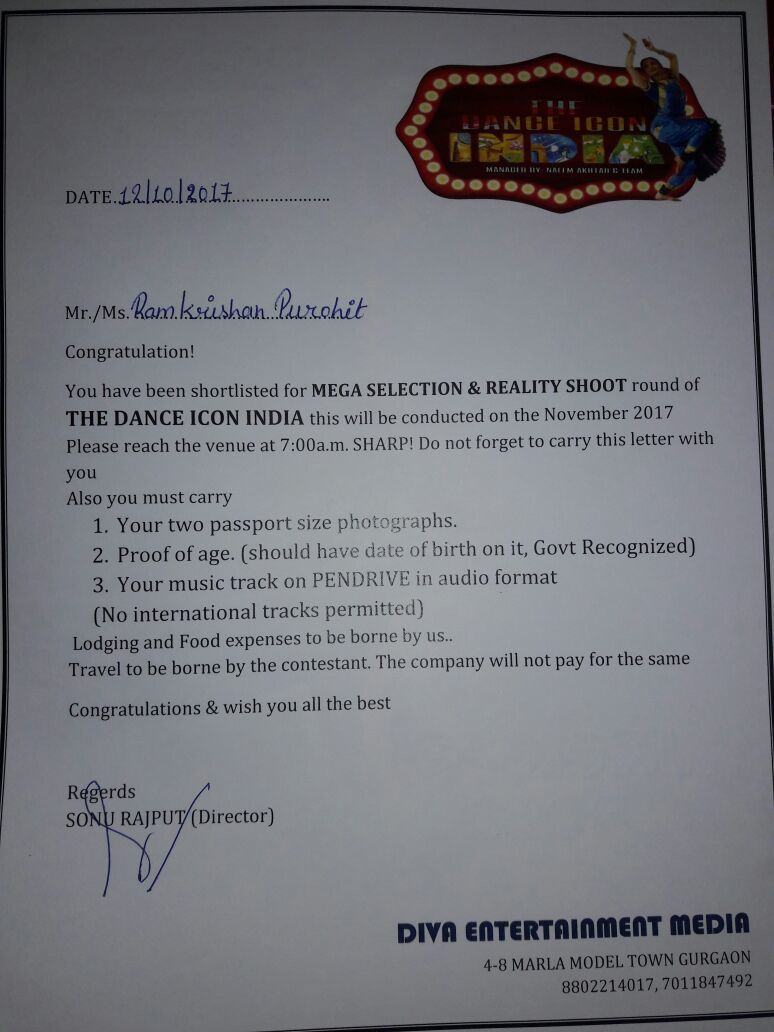 I am for semifinals of all India dance championship, and The dance icon of India TV show, I have won 3 dance competition. I have a totally different and new dance style.