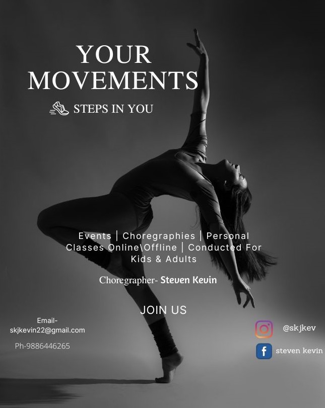 Steven Kevin from Bangalore he is a professional dancer who has been trained and experienced in Western dance culture for the past 5 years now from dance7art factory and also worked as assistant choreographer and won the Mr.Talent 2022 for his solo dance performance by Cream biscuits entertainments he is well known for freestyle mix,hip hop,Folk and contemporary and also have travelled for many cities for gaining knowledge and experience and exploring in dance industry he is also an actor who has acted in short films and part of Team advaitha Film institution crew member and also an aspiring model where he has won the Mr.south India 2022 he is also and now started and he is also a community service director in Rotaract club of Indiranagar and now has started his new venture of his own dance club called Your movements in Bangalore |