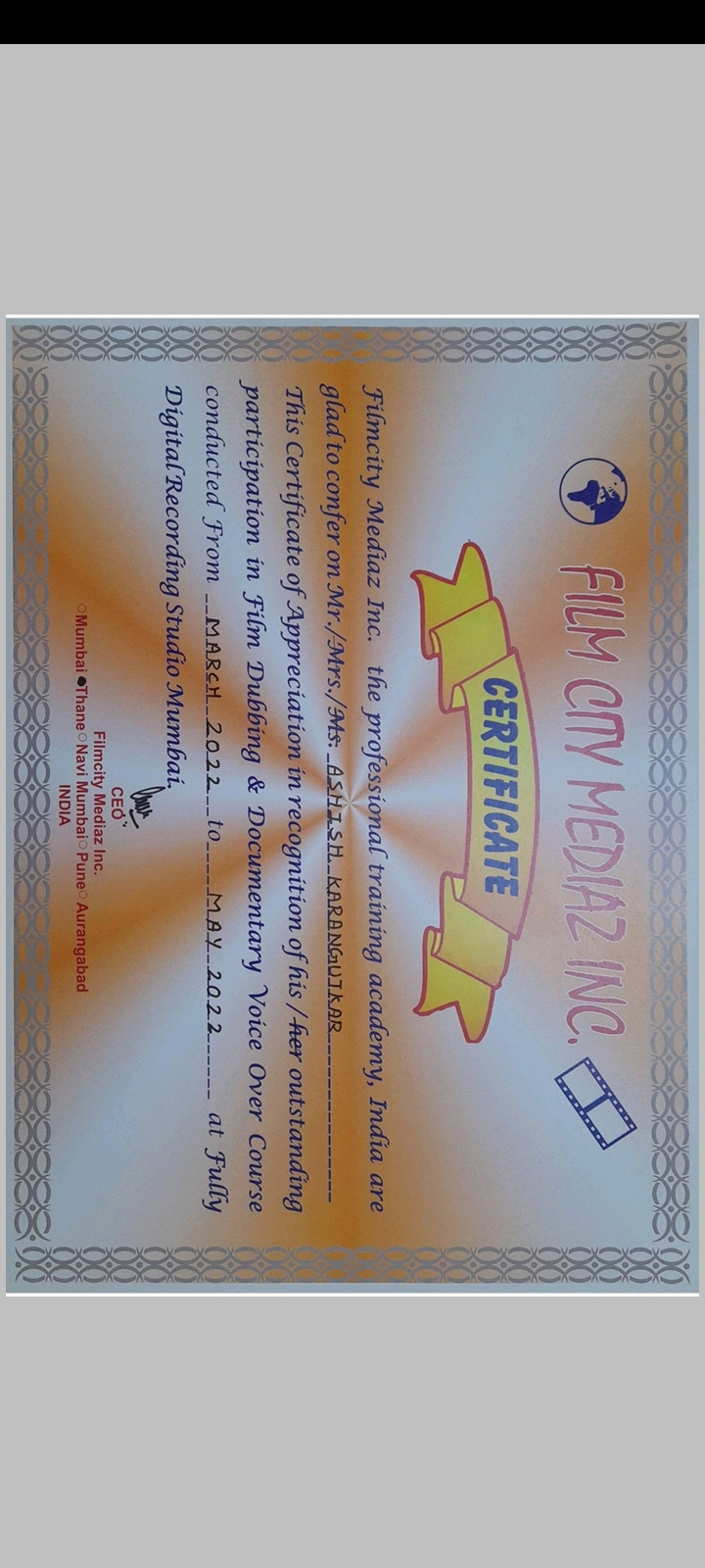 Welcome Ashish A Karangutkar!
