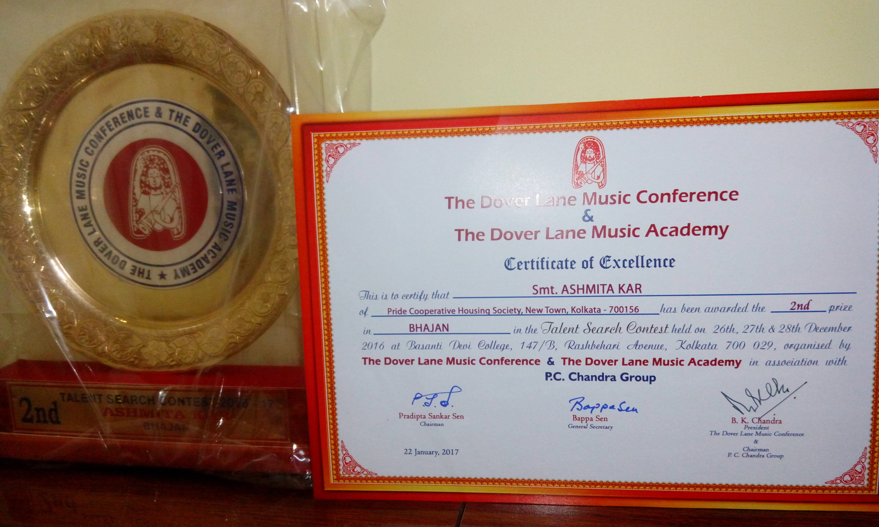 In top 9th of Zee TV Saregamapa 2016 at Mumbai; Versatile Singer of all genres; Recent Play back done in Bengali Film "Ei Shohore". In Dover lane Music Conference & Music Academy Talent Search 2016 attained 2nd position in singing of Bhajan, In WB Rajya Sangeet Academy music contest 2016 attained 3rd position in singing "Dhrupad & Khayal; In State Level Inter College University singing contest attained 1st rank in singing "Devotional Songs". Performed on stage with bollywood singer Ash King in College Annual Fest at Kolkata. Doing regular public singing shows at Kolkata and in Delhi. |