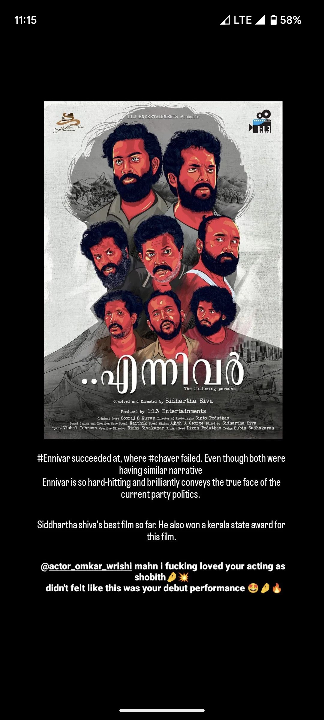 Hey! I'm Omkar Wrishi, an actor from Kochi. Acting is where effortlessly navigate emotions, and imitation, well, that's my secret weapon-l can mirror anyone's body language and talking style. |