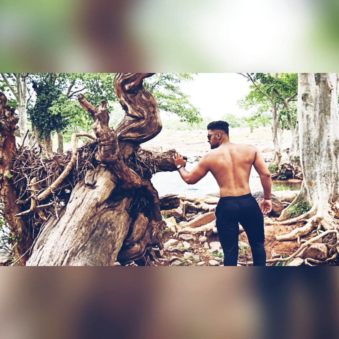 Young boy with agrresive face and muscular body |