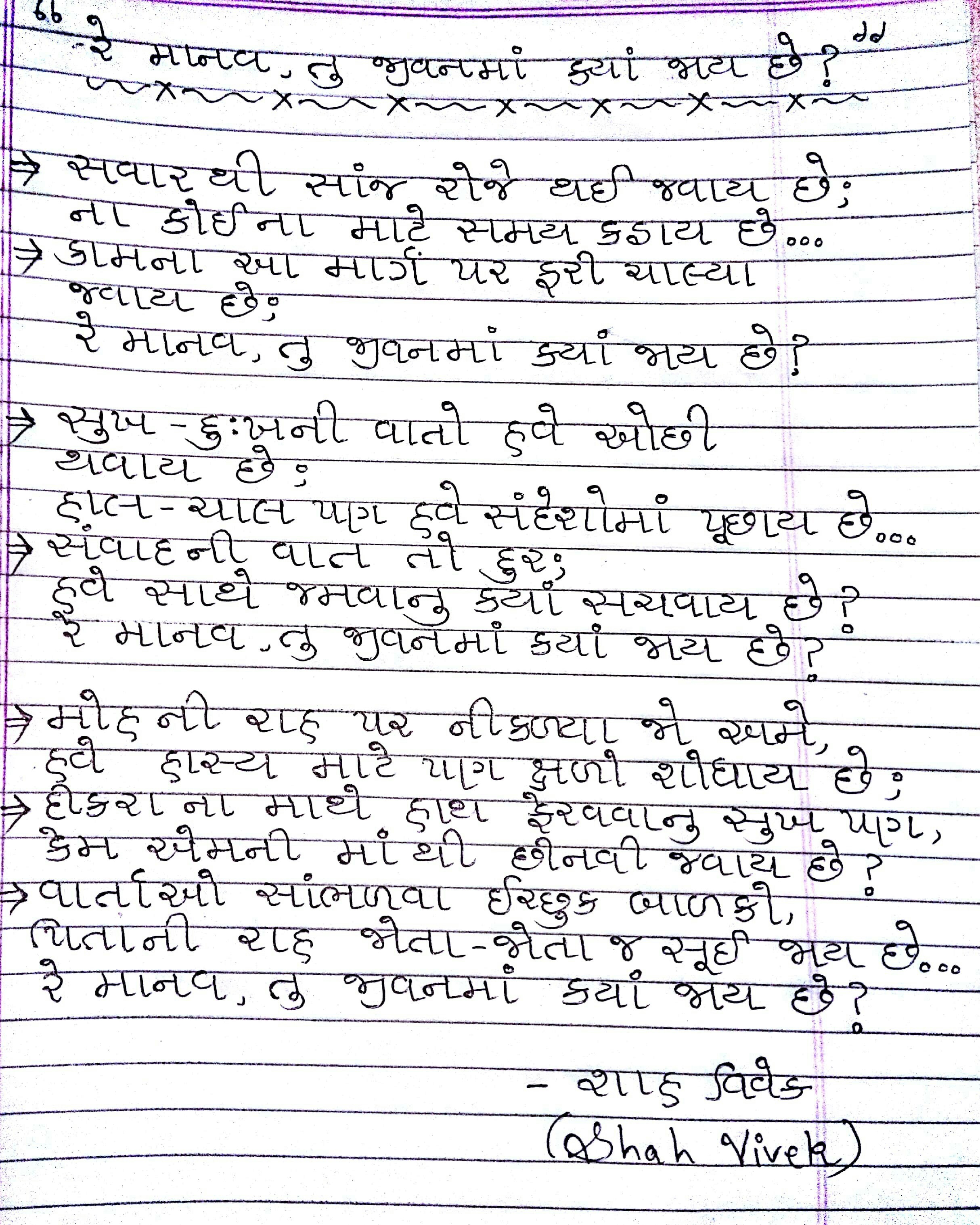Hi, Shah Vivek Here. I m pursuinh my degree in B.E as an electrical engineer. Bit since, writing is my passion and love to the poetry..I m searching to accomplish my dream as a writer. I hope people understand my poetry and recruit me. Thank you. You can check to some of my writing in the image section provided. |