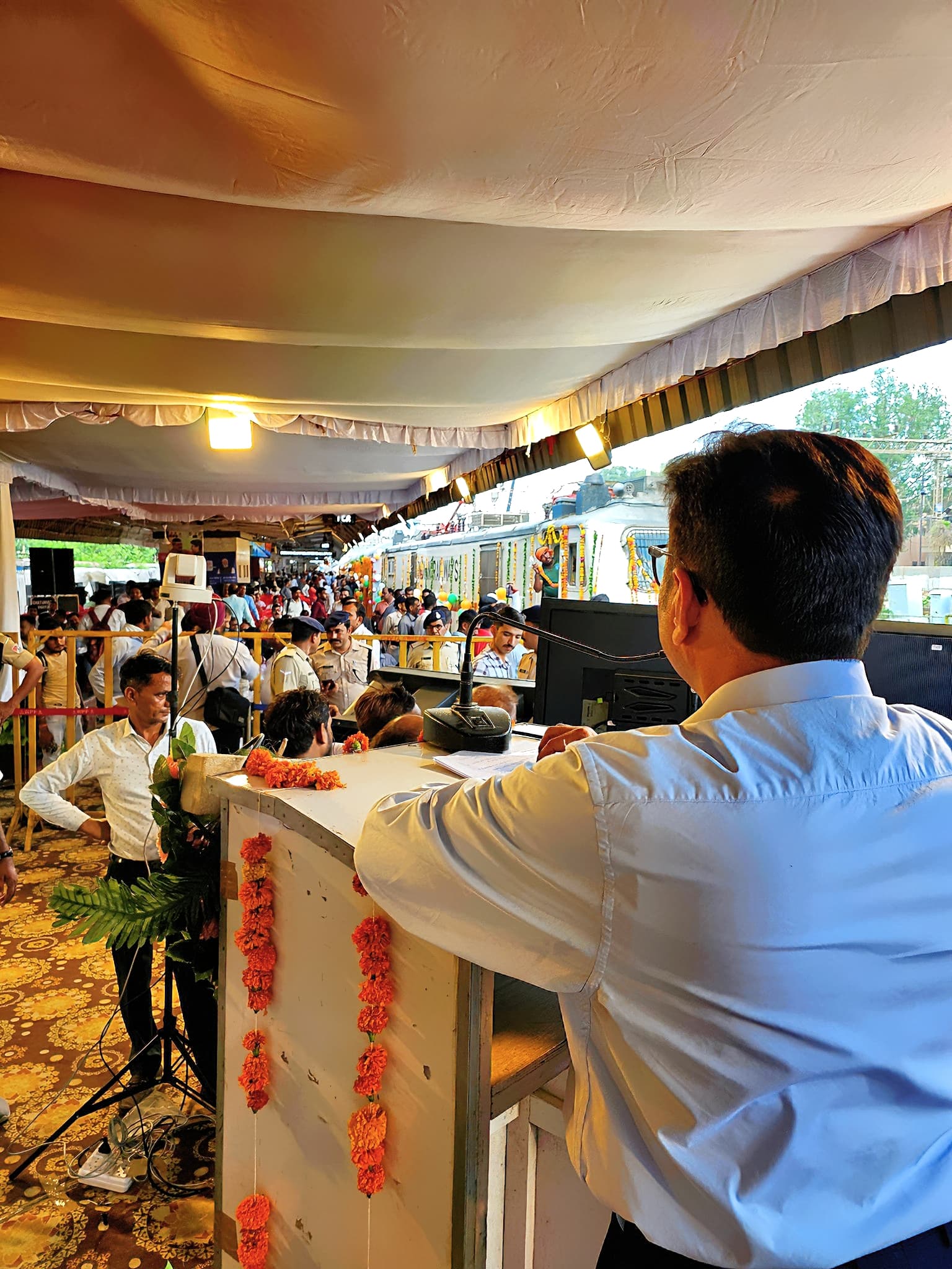 Flagging off of the GwaliorBangalore Train with Honble Chief Minister of Madhya Pradesh Dr. Mohan Yadav, Honble Speaker of MP Legislative Assembly Shri Narendra Singh Tomar, Honble Union Minister Shri Jyotiraditya Scindia, and Honble Railway Minister Dr. Ashwini Vaishnaw.