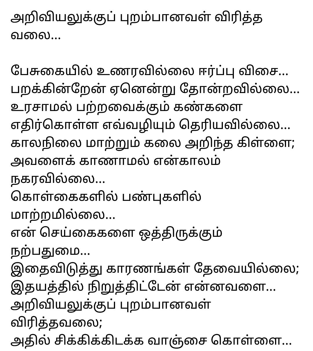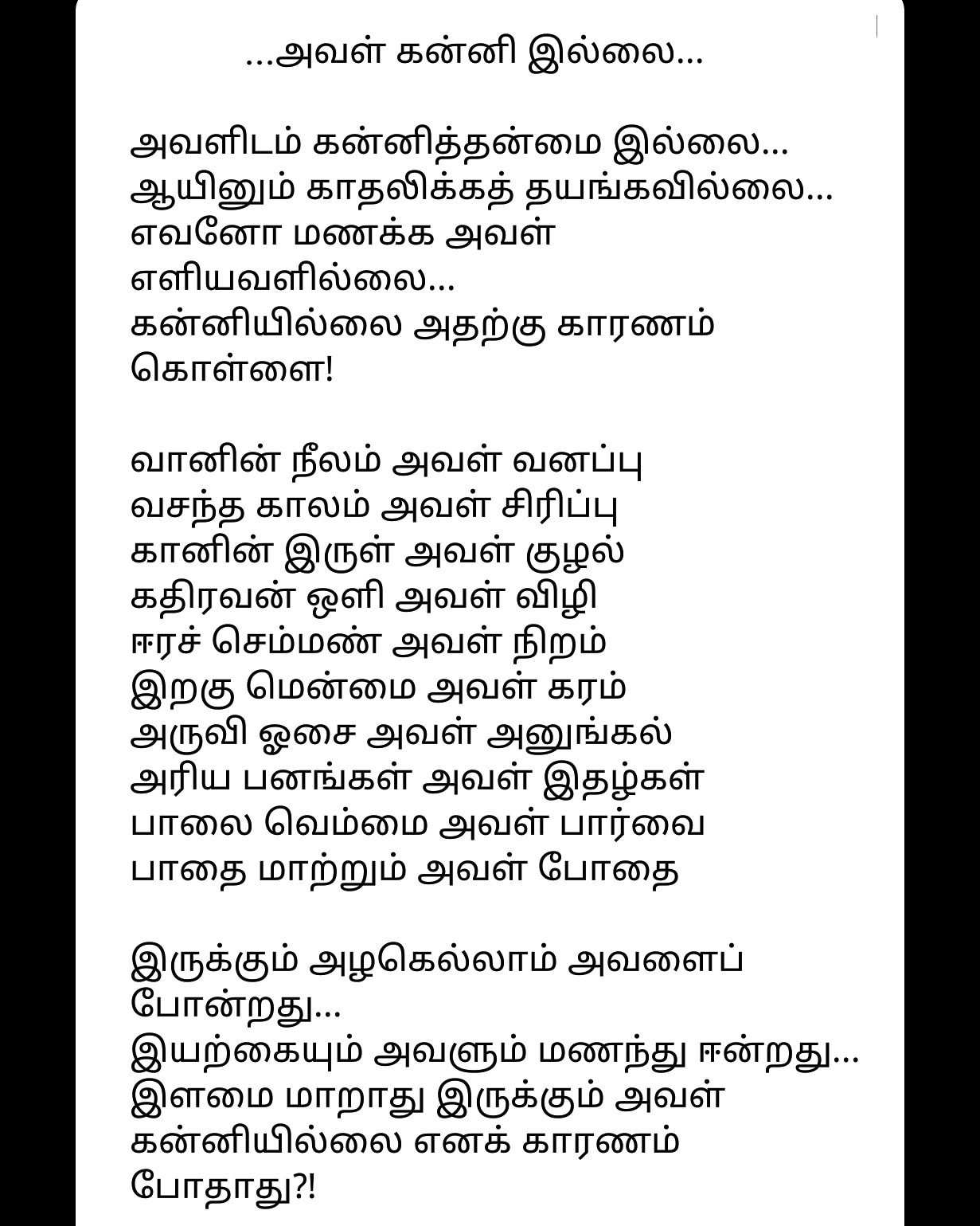Ex Literature Head of Paavendhar Bharathidasan Tamil Literary Association, VIT University. Good in writing poems in Tamil. |
